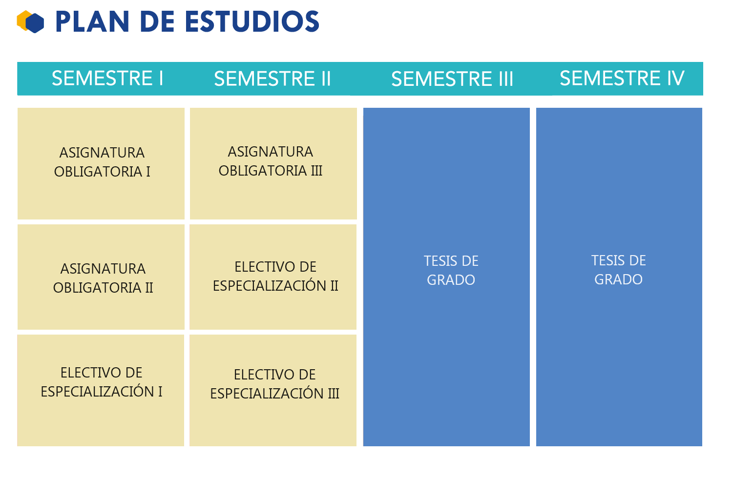 Duración de los estudios: El programa se imparte con sistema presencial de 4 semestres de duración (2 años), no pudiendo extenderse más allá de los 6 semestres.